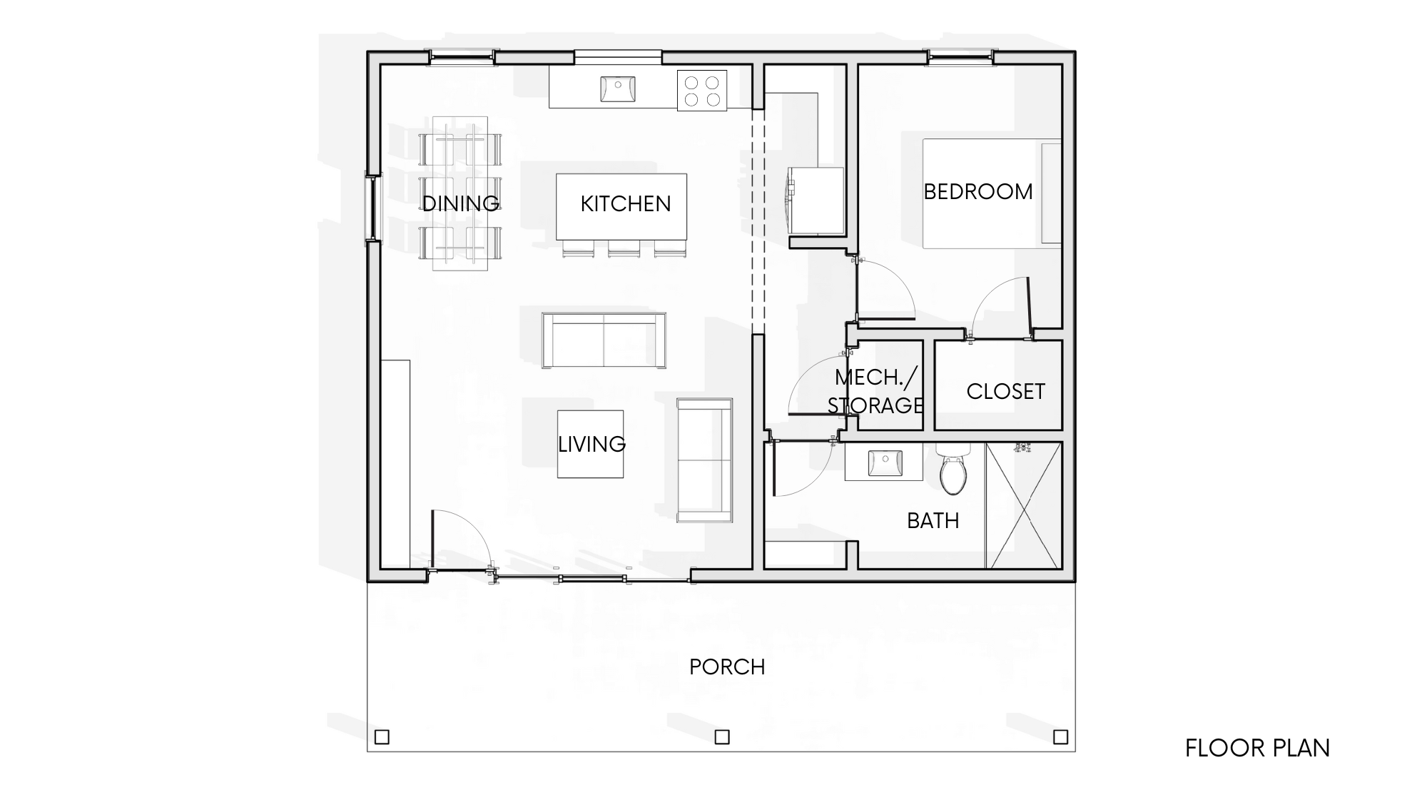 This home design is perfect for an accessory dwelling unit, efficient primary home, or functional pool house.