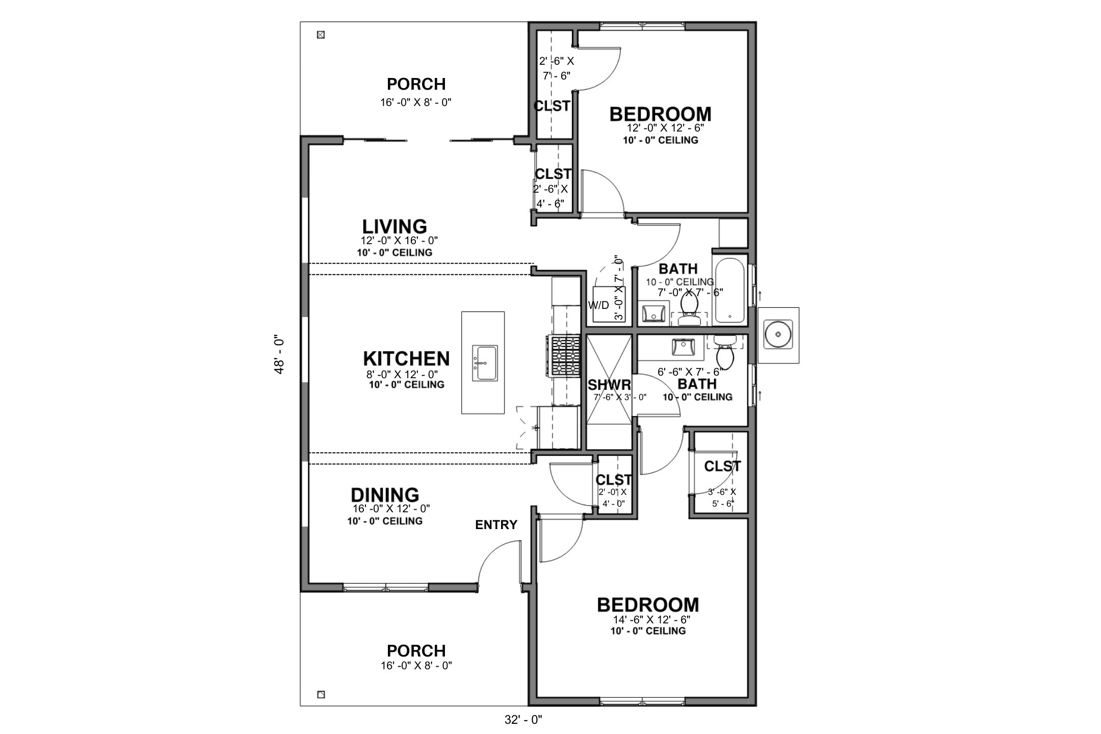 WIDTH X DEPTH: 32'-0" x 48'-0"